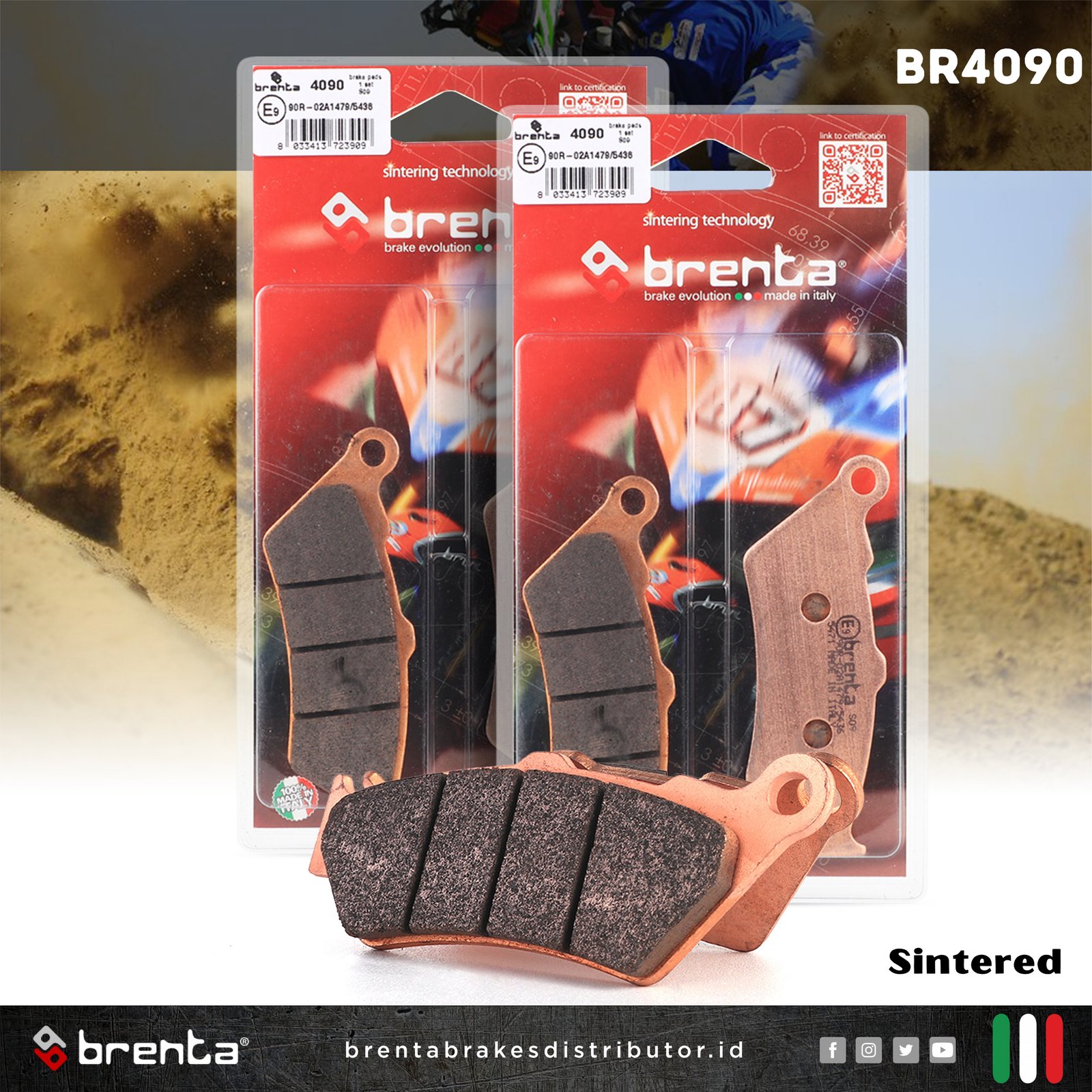 Kampas Rem Brenta Sintered – BR4090, dapat digunakan untuk motor :